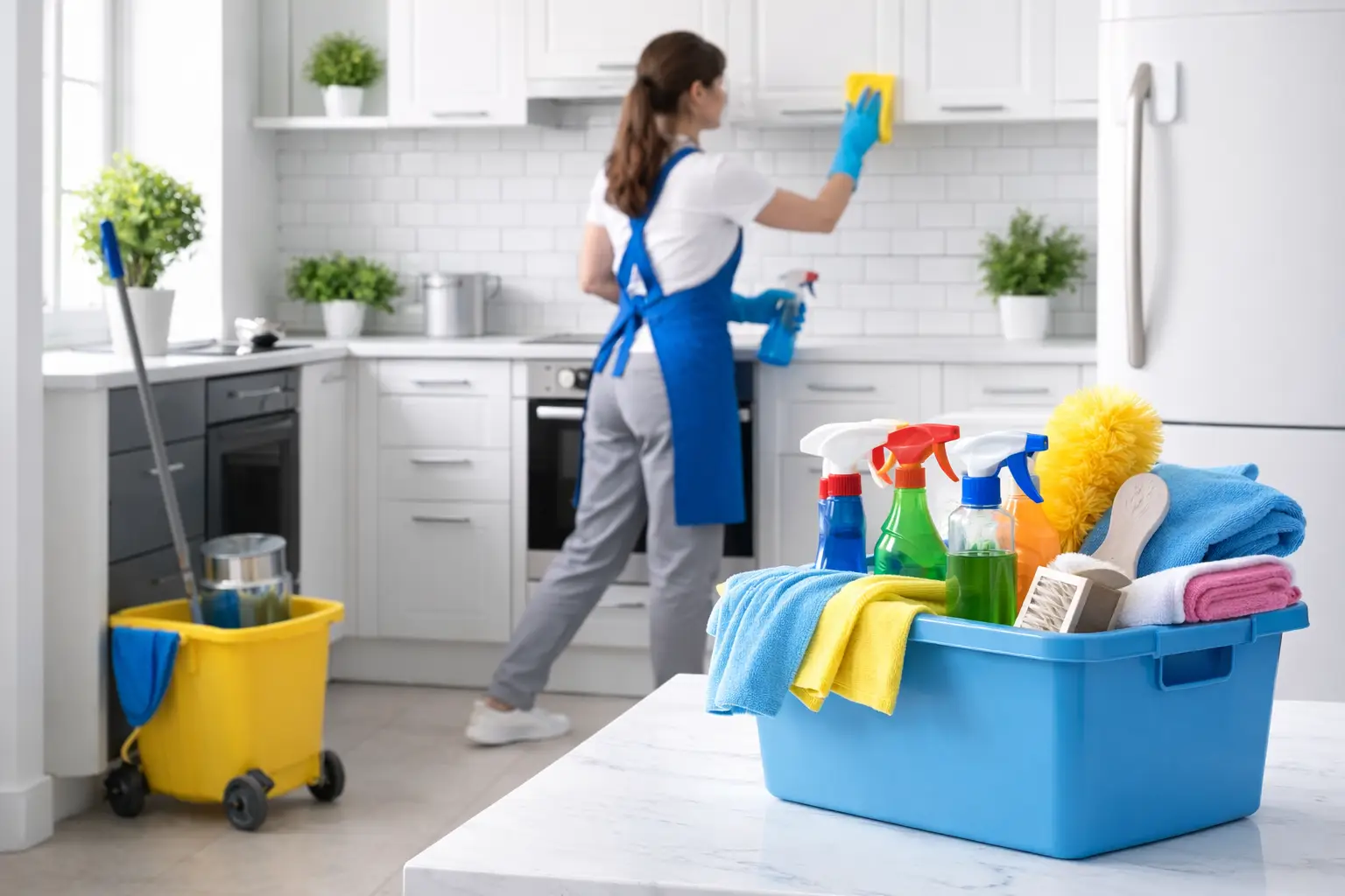 - Deep cleaning of kitchens, bathrooms, floors, and all surfaces